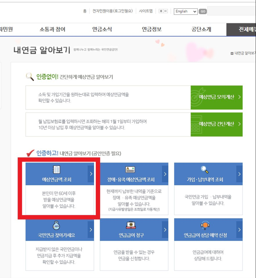 예상연금액 조회 방법