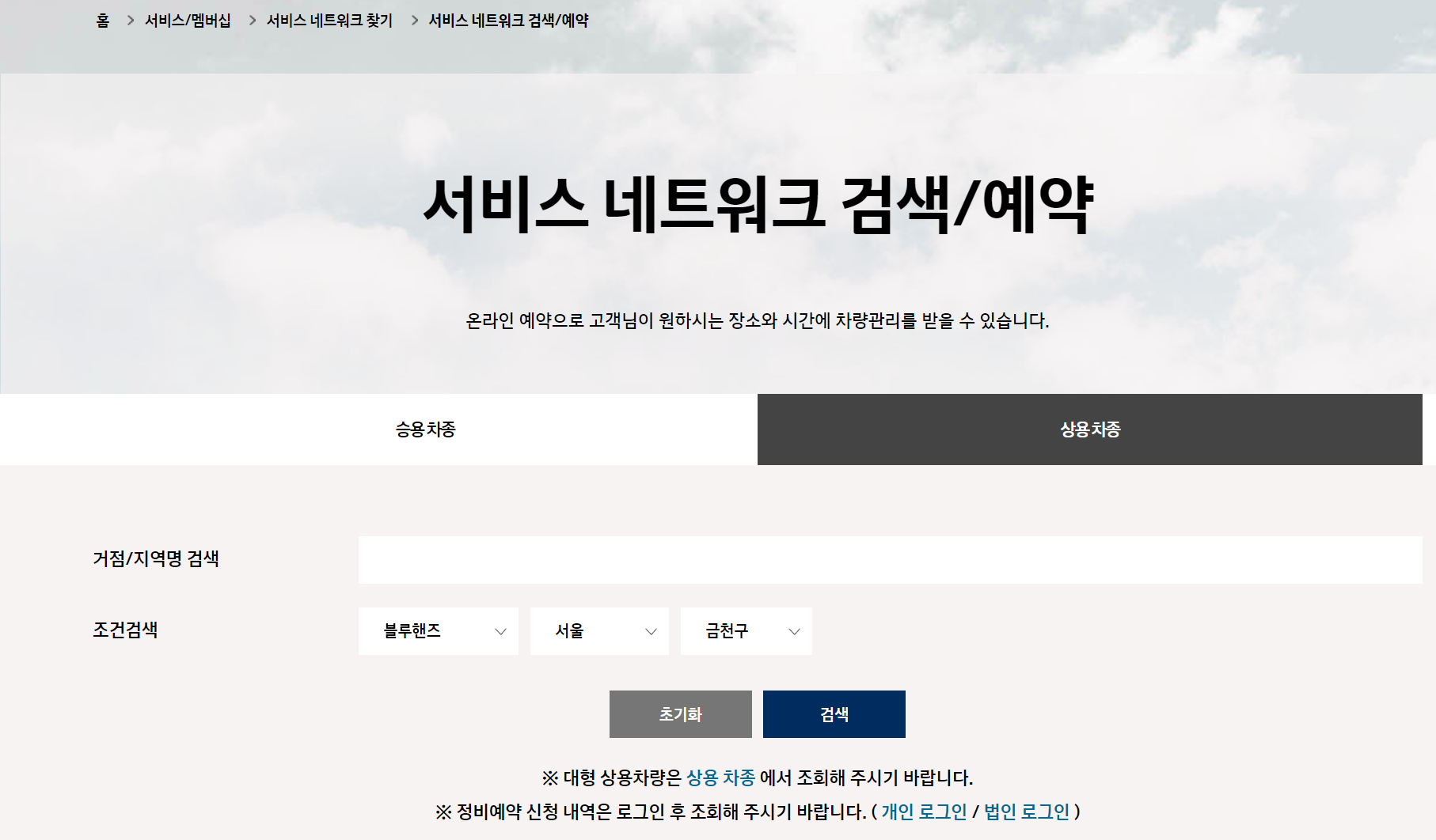 서비스 네트워크 검색/예약 | 현대자동차 - 현대닷컴 | 대한민국 대표 자동차회사 hyundai.com
