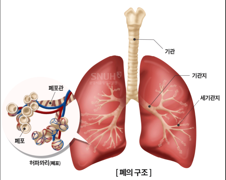 폐렴 증상이 나타나면 염증으로 폐를 구성하는 세포가 파괴되어 정상적인 산소를 저장하지 못해 호흡곤란을 겪는 경우가 많다.