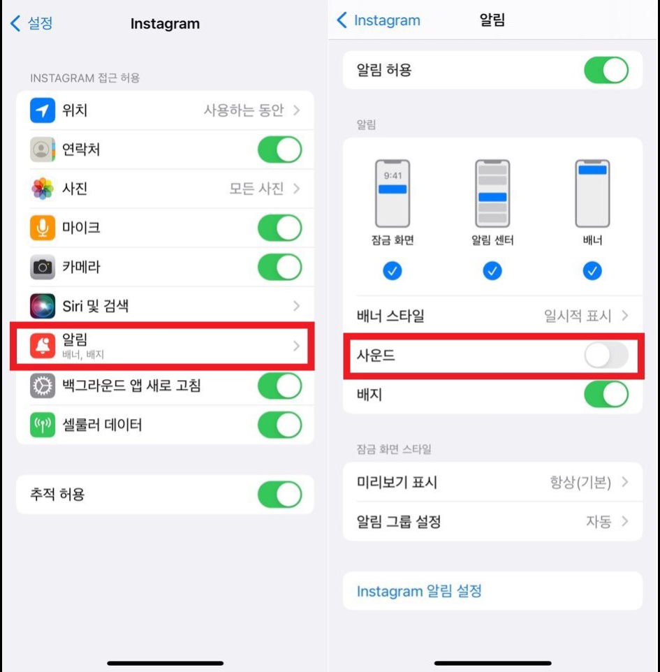 두번째로 스마트폰에서 자체적으로 알림을 끄는 방법인데요. 스마트폰에서는 개별 앱의 알람을 켜고 끌 수 있습니다. 이럴경우 전체알림을 못 받을 수 있으니 그건 고려해 보셔야 할것같아요.
