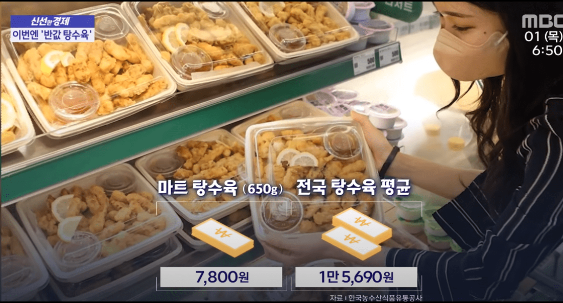 롯데마트가 9월부터 판매한 반값탕수육의 경우 일주일에 3만개를 판매하였는데요. 롯데마트에 7천원으로 선보인 한통가득 탕수육이 엄청난 인기로 롤데마트의 델리코너의 매출이 20퍼센트나 증가했다고 합니다. 할인이벤트 이후 9,800으로 한통가득 탕수육을 지속적으로 판매한다고 하며, 가끔씩 행사할때를 기다리면 비교적 저렴한 가격에 탕수육을 즐기 수 있을 것으로 보입니다.